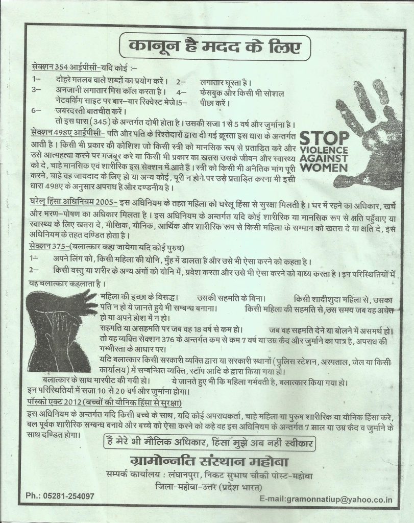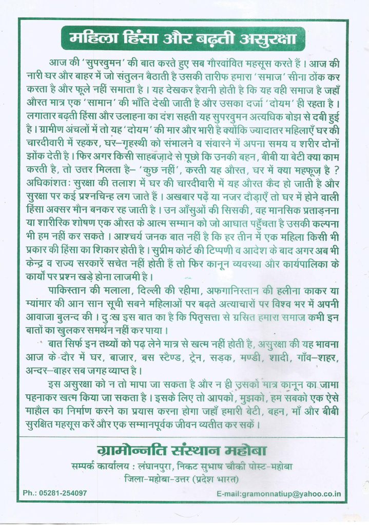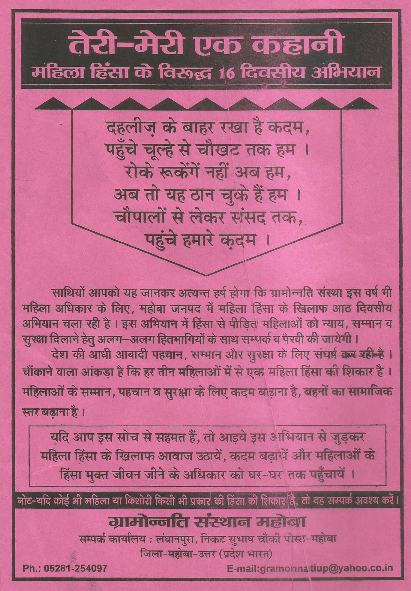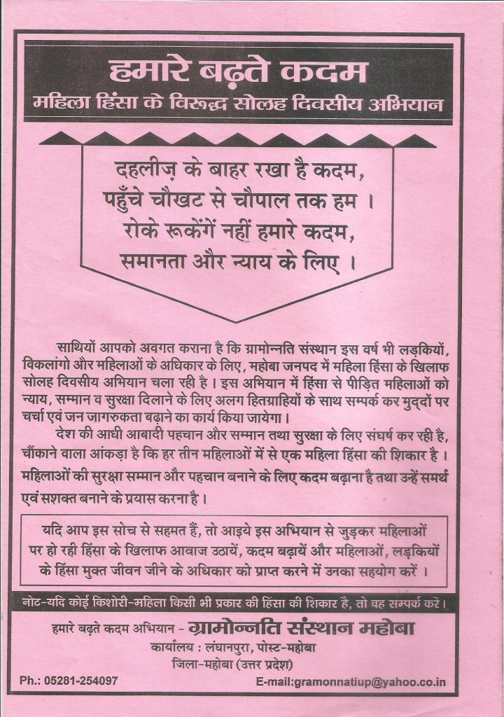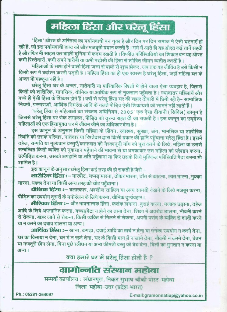 Publications ग्रामोन्नति संस्थान ब्रोशरतेरी-मेरी एक कहानी महिला हिंसा और बढ़ती असुरक्षाघरेलू हिंसा और महिलाओं के मौलिक अधिकार महिला हिंसा और घरेलू हिंसा कानून है मदद के लिए महिला हिंसा के खिलाफ हम सबकी आवाज महिला हिंसा और बढ़ती असुरक्षा हमारे बढ़ते कदम नीमास्त्रअग्निअस्त्र ब्रह्मास्त्र दशपर्णी अर्क घनजीवामृतजीवामृतबहुफसली पद्धति बीजामृत (बीजशोधन)आच्छादन प्राकृतिक खेती अपनाने हेतु जैविक खाद